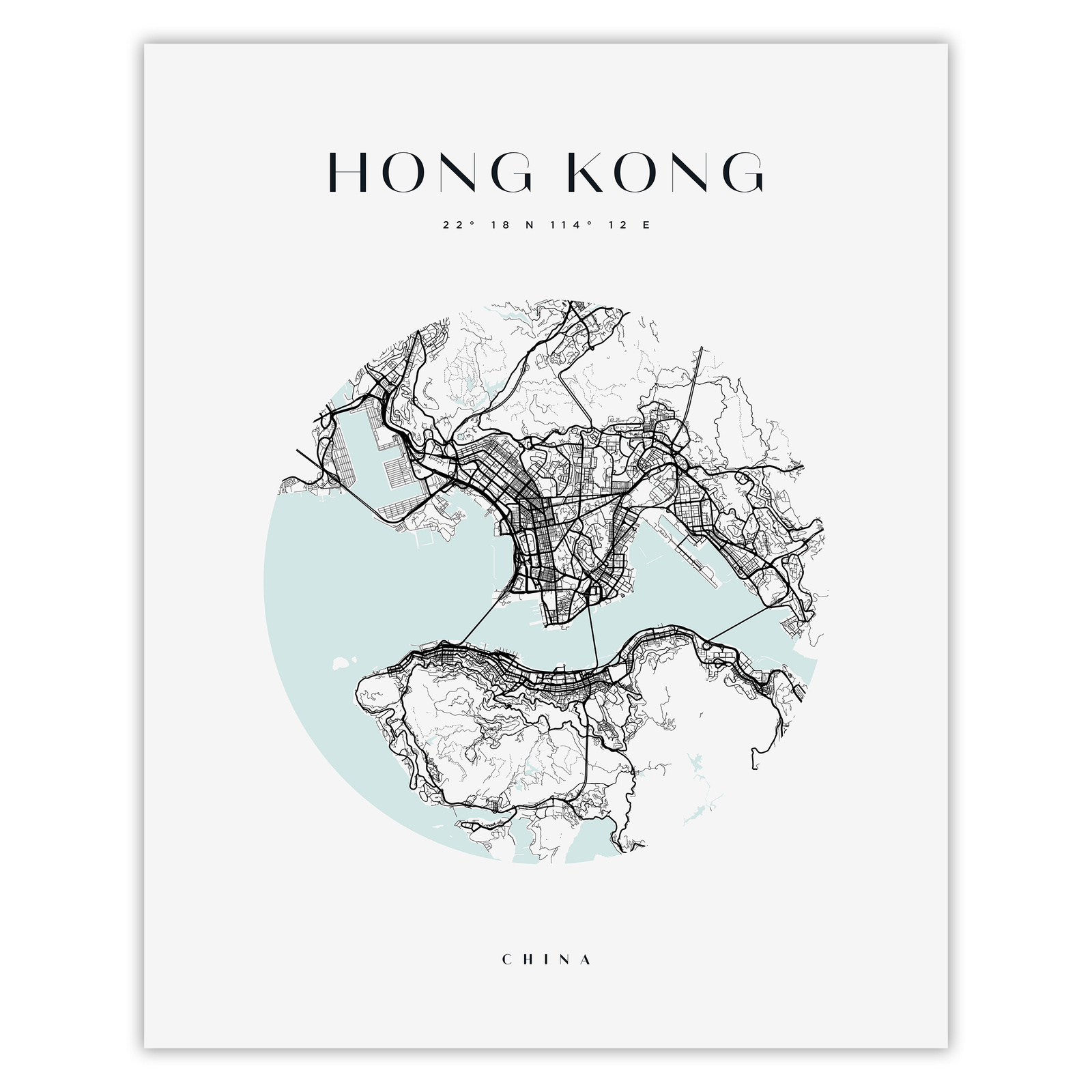 Poster Hong Kong city map circle 40X50 cm + gold frame