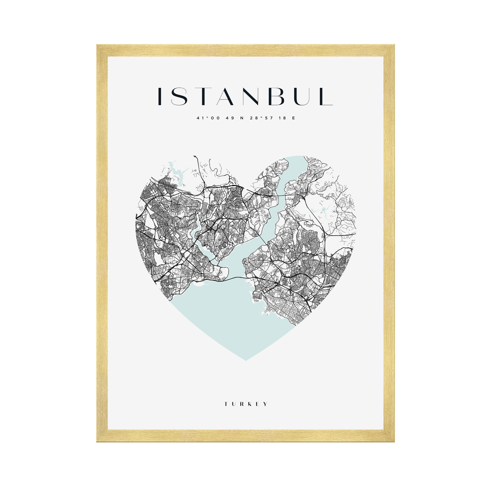 Poster Istanbul city map heart 40X50 cm + gold frame