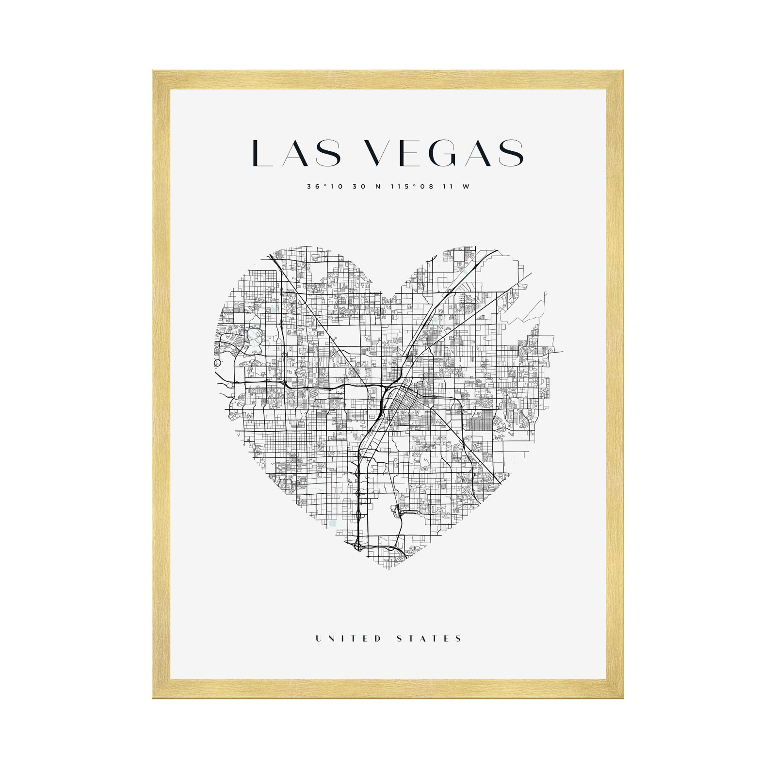 Poster Las Vegas city map heart 40X50 cm + gold frame