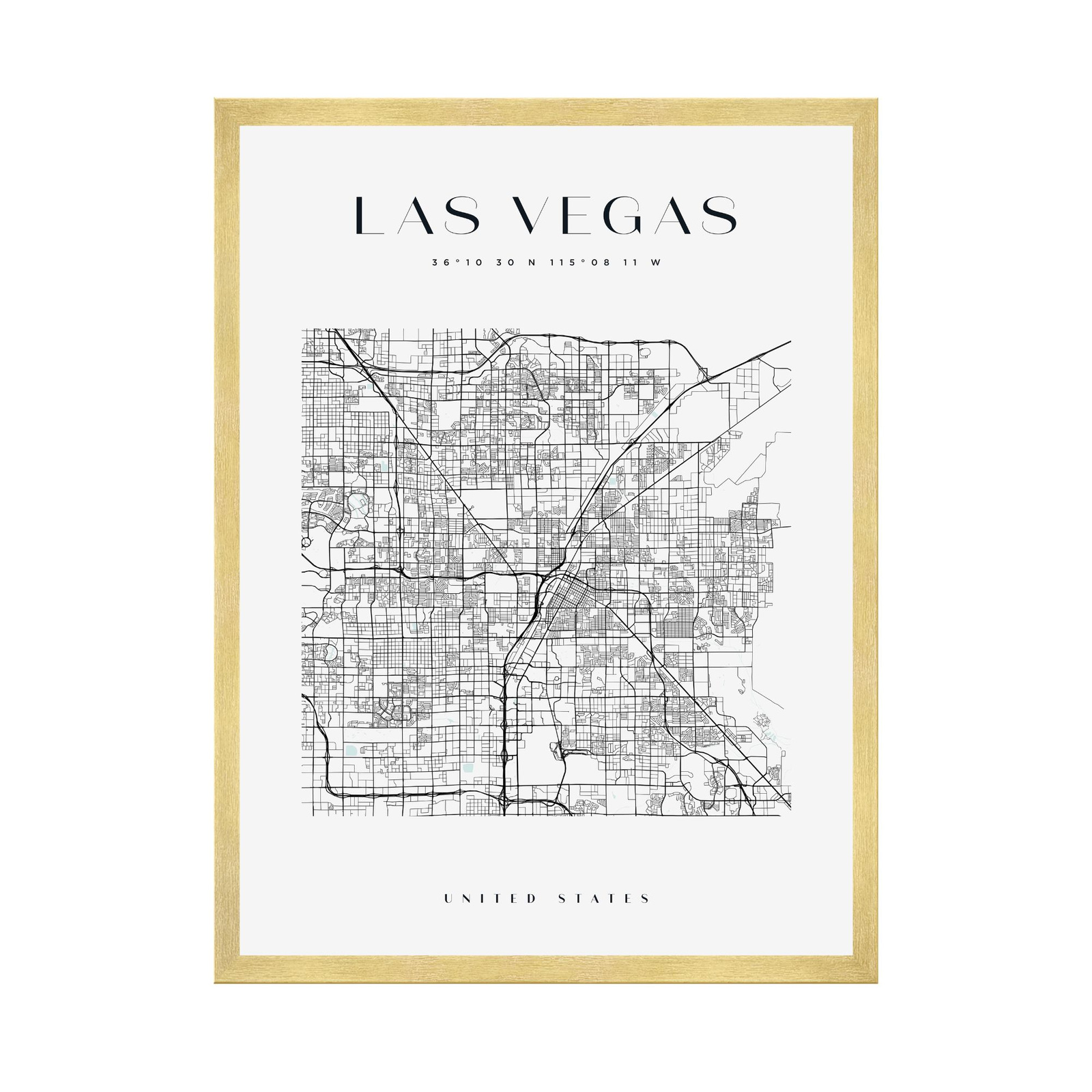 Poster Las Vegas city map square 40X50 cm + gold frame