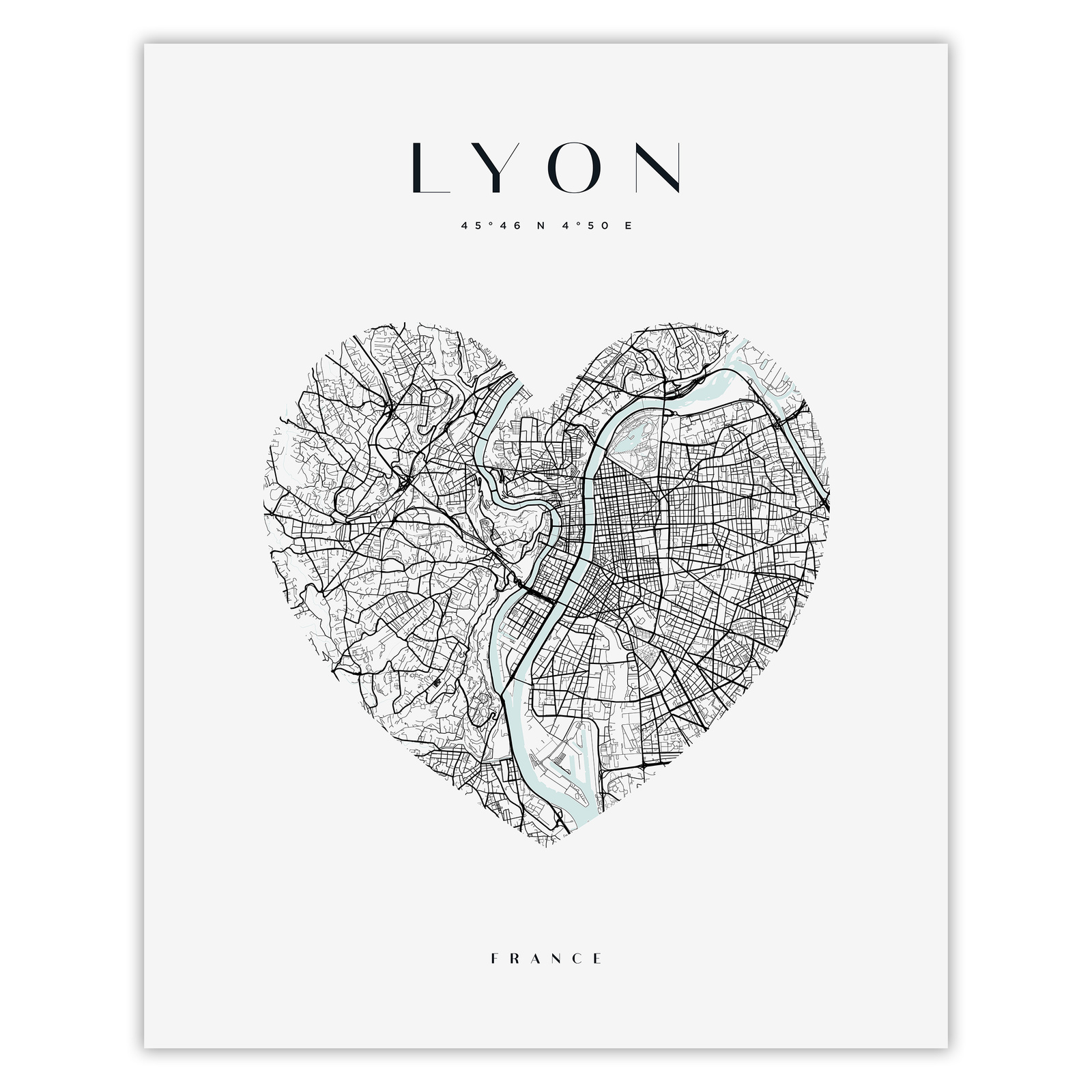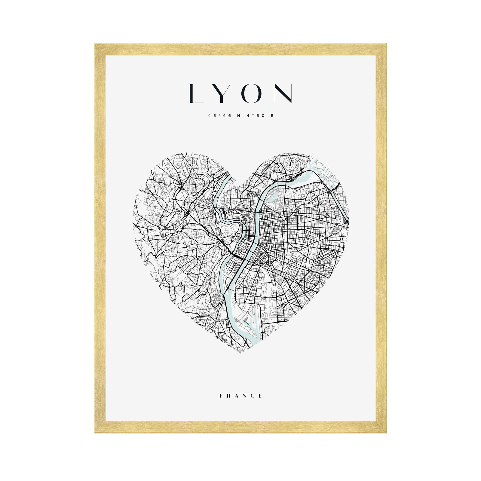 Poster Map of Lyon city circle 40X50 cm + gold frame