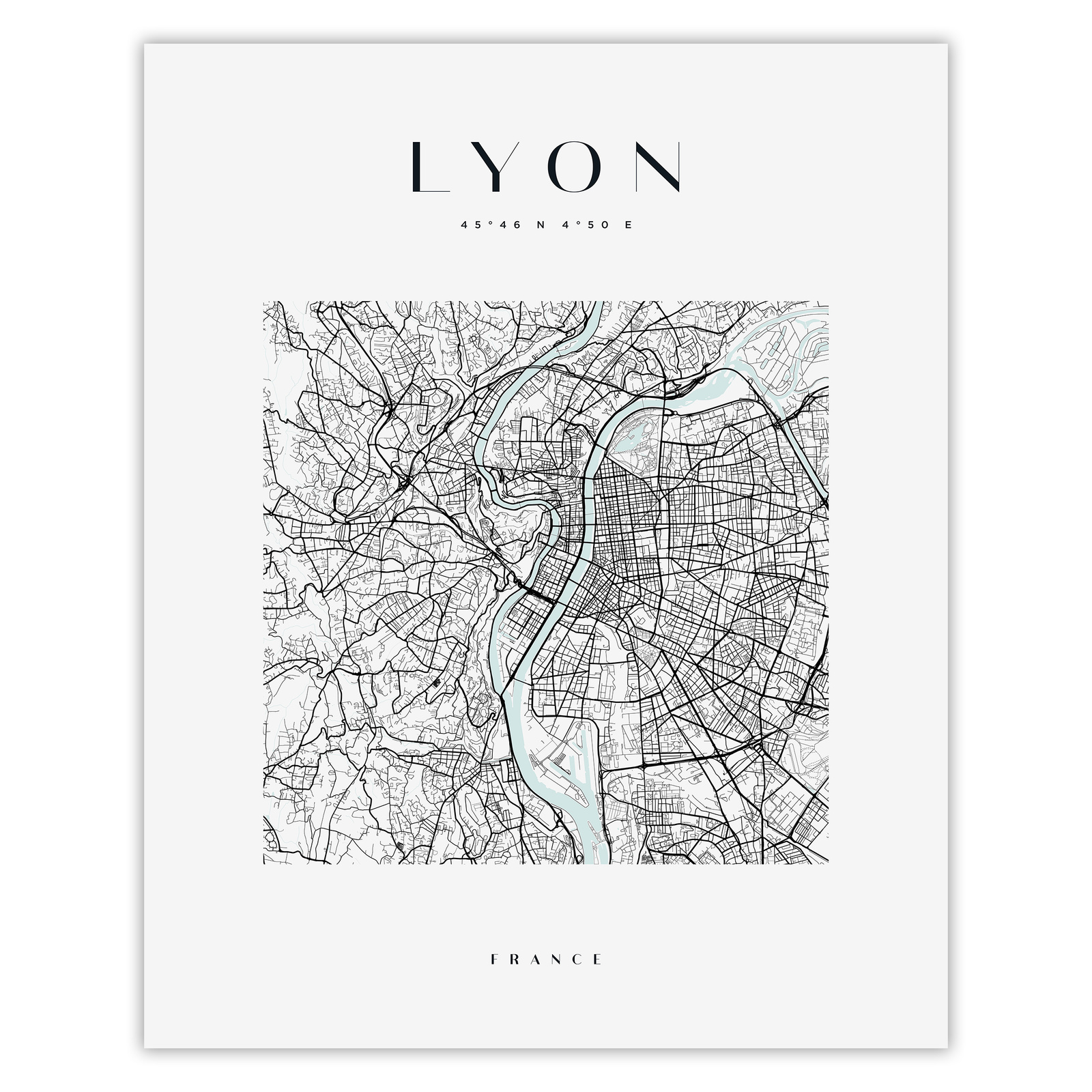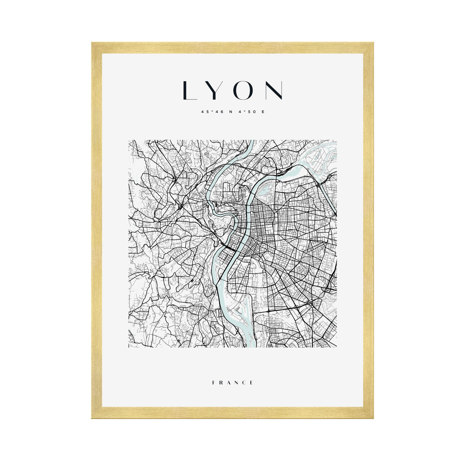 Poster Lyon city map square 40X50 cm + gold frame
