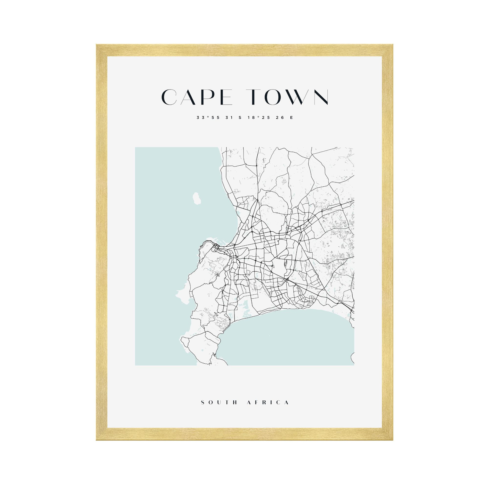 Poster Map of Cape Town square 40X50 cm + gold frame