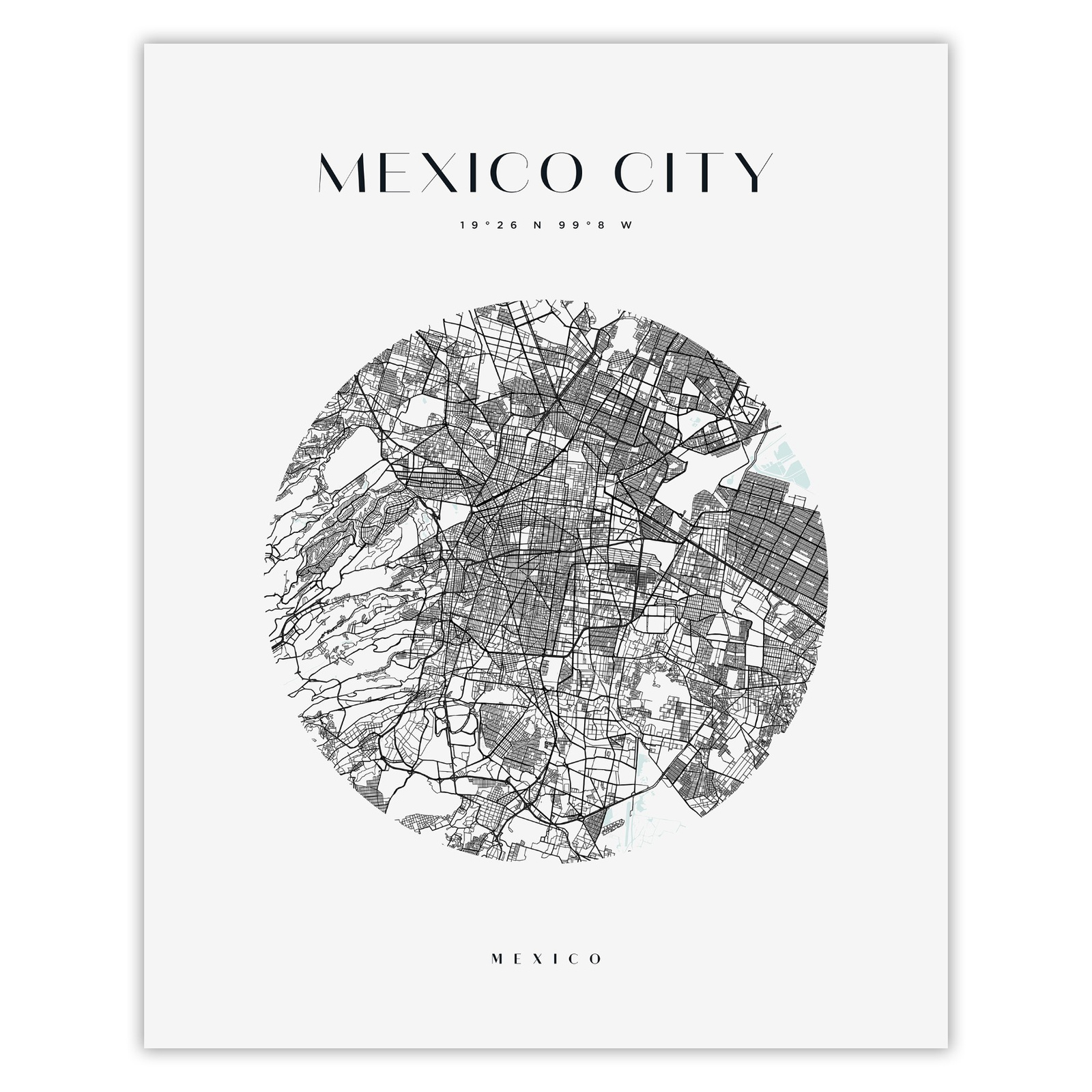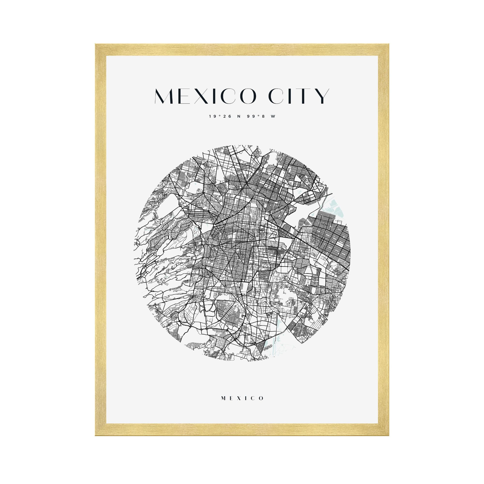 Poster Map of Mexico City circle 40X50 cm + gold frame