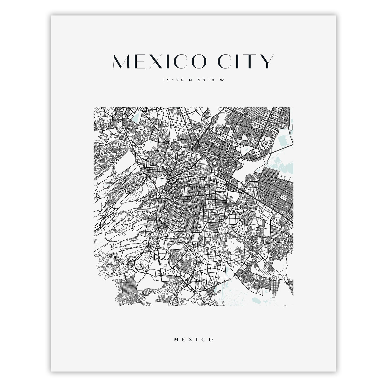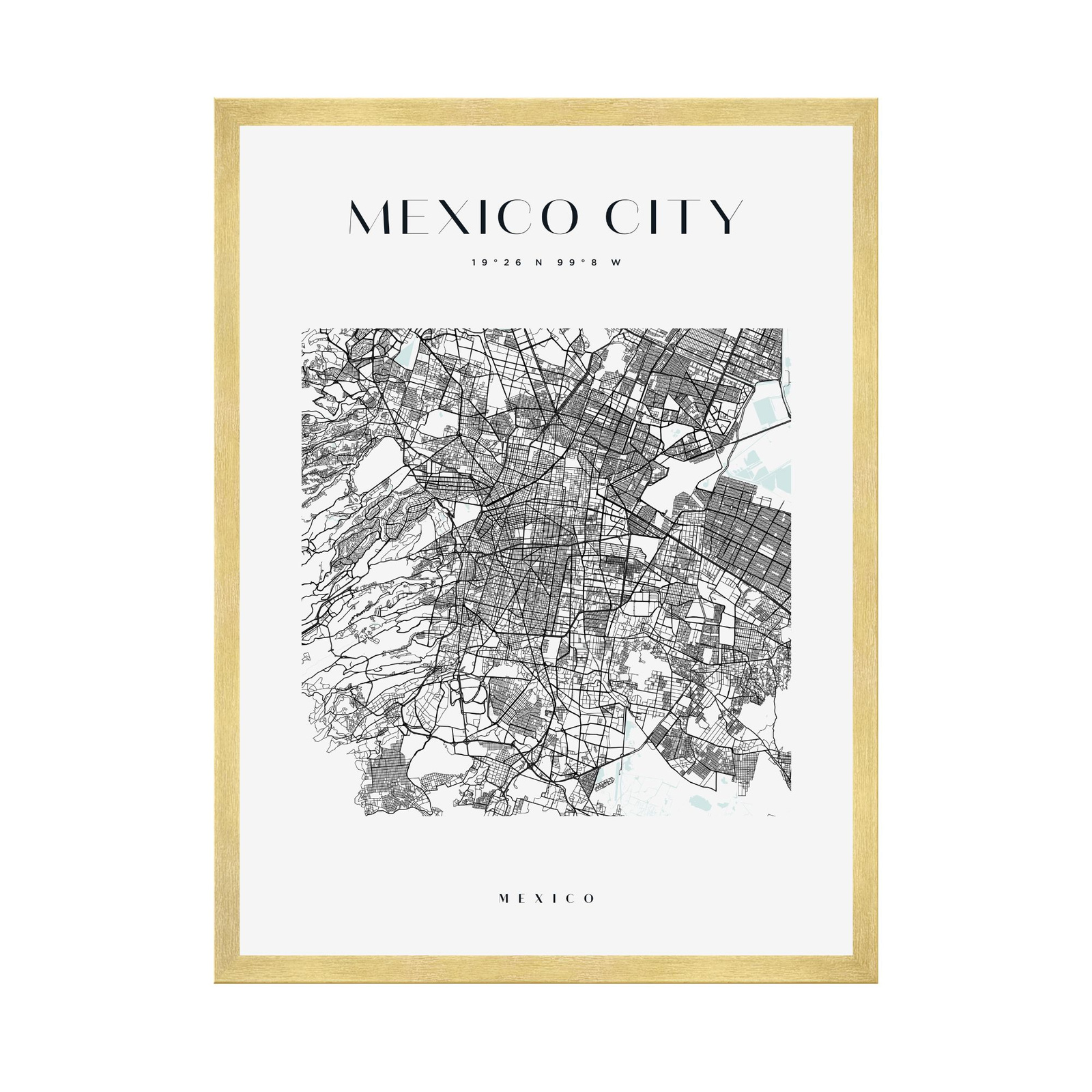 Poster Map of Mexico City square 40X50 cm + gold frame