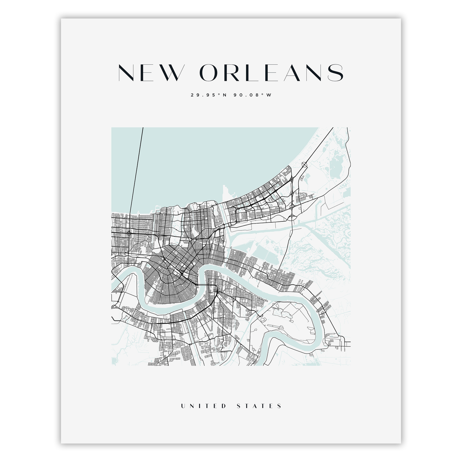 Poster Map of New Orleans square 40X50 cm + gold frame