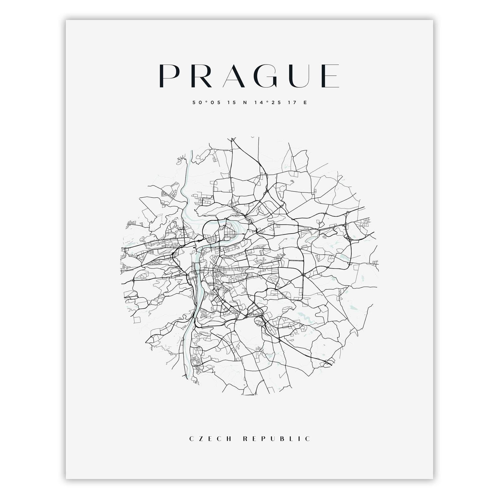 Poster Map of Prague city circle 40X50 cm + gold frame