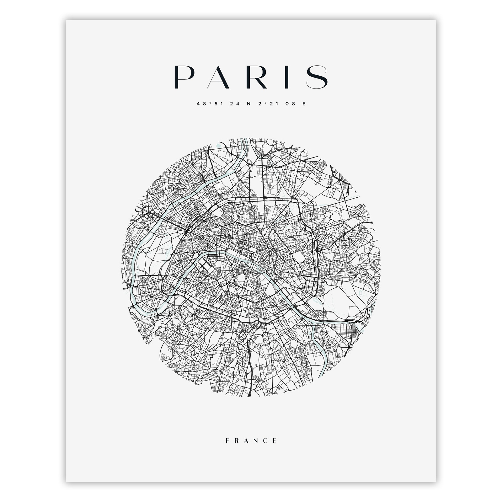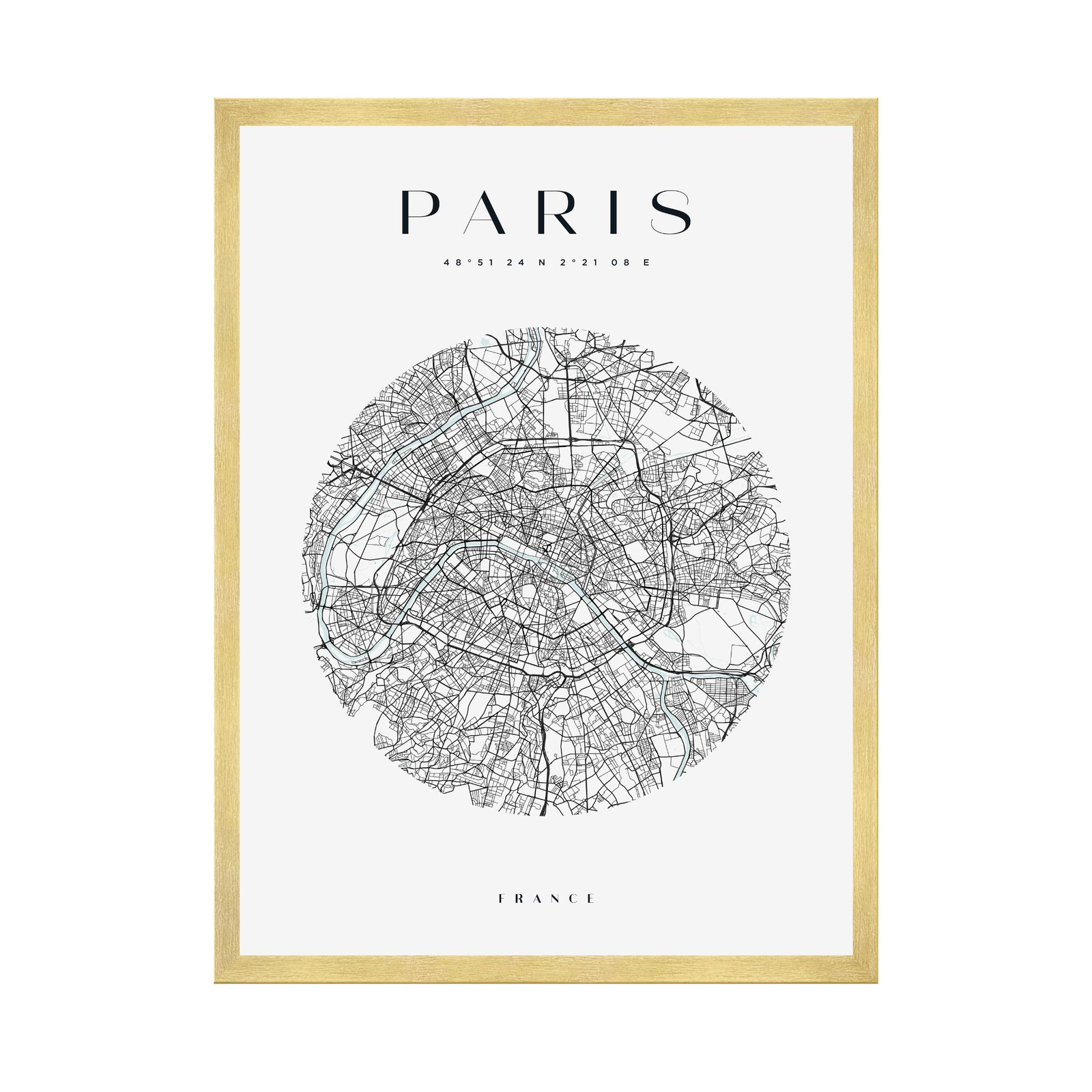 Poster Map of the city of Paris circle 40X50 cm + gold frame