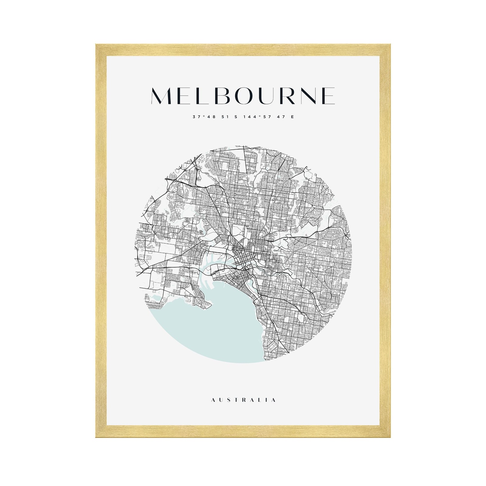Poster Melbourne city map circle 40X50 cm + gold frame