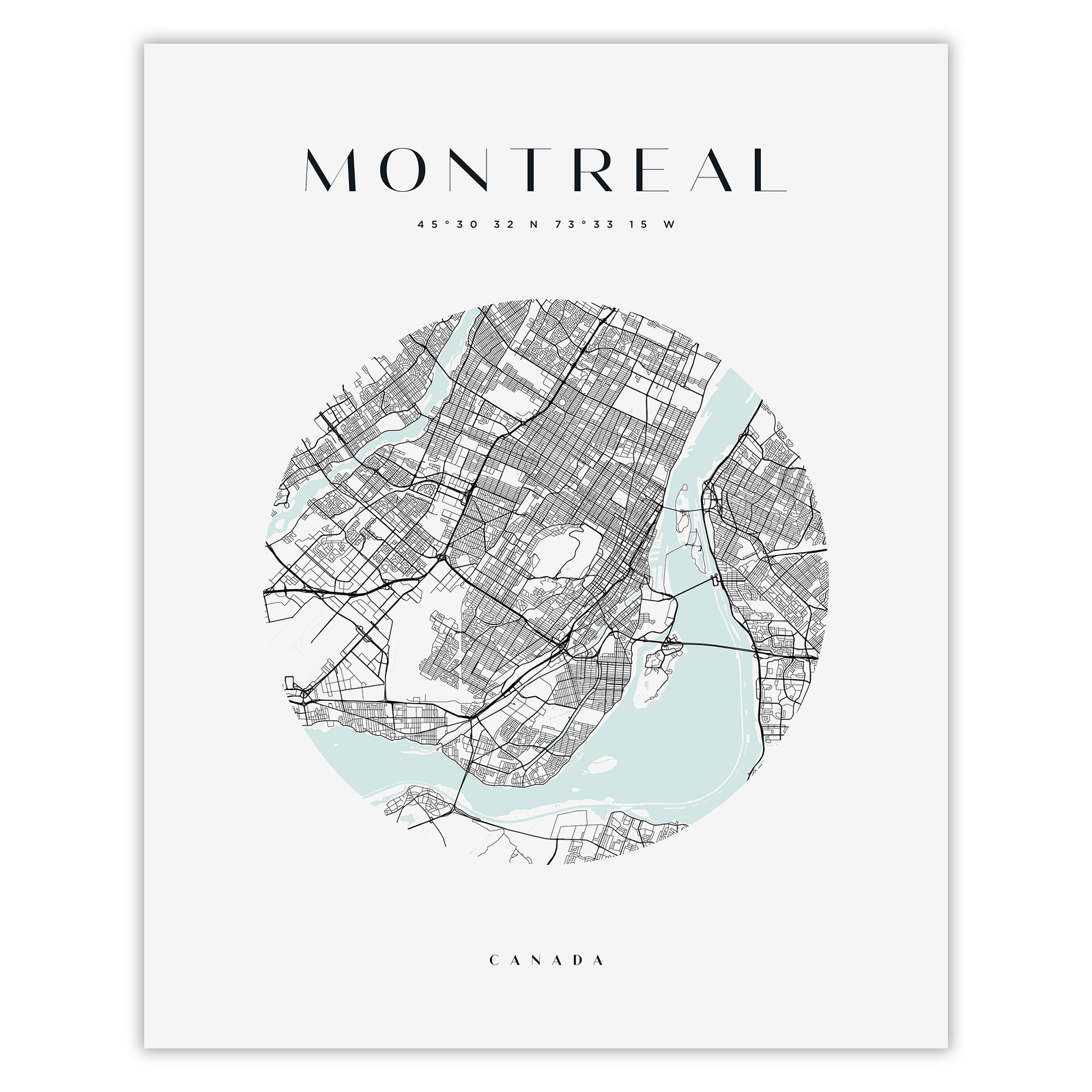Poster Montreal city map circle 40X50 cm + gold frame