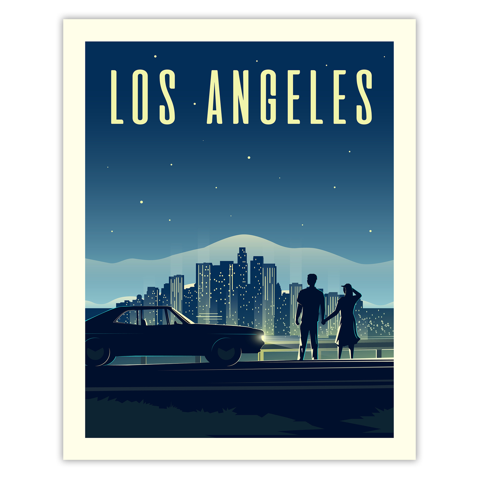Poster of the City of Los Angeles 40X50 cm + gold frame