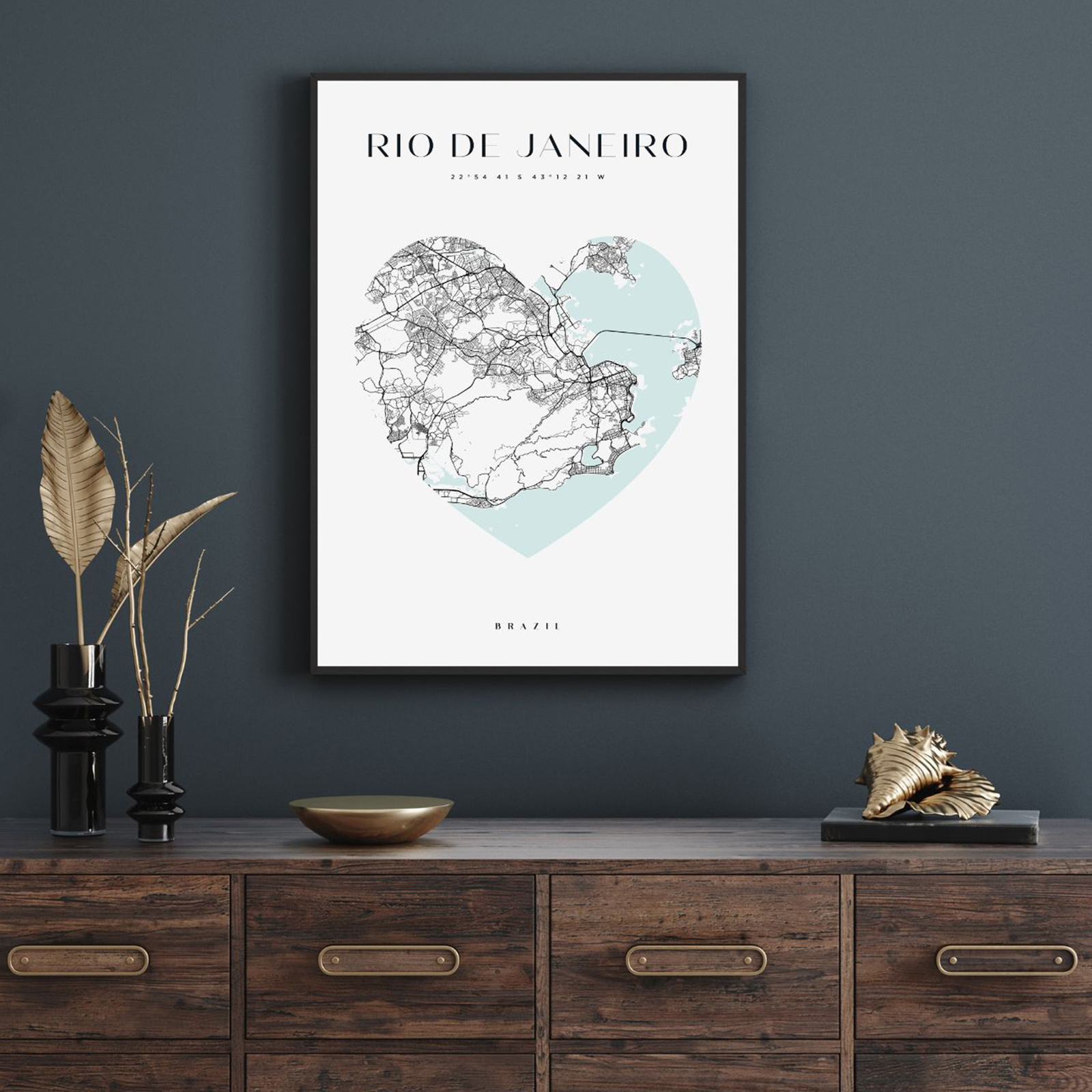 Poster Rio De Janeiro city map heart 40X50 cm + gold frame