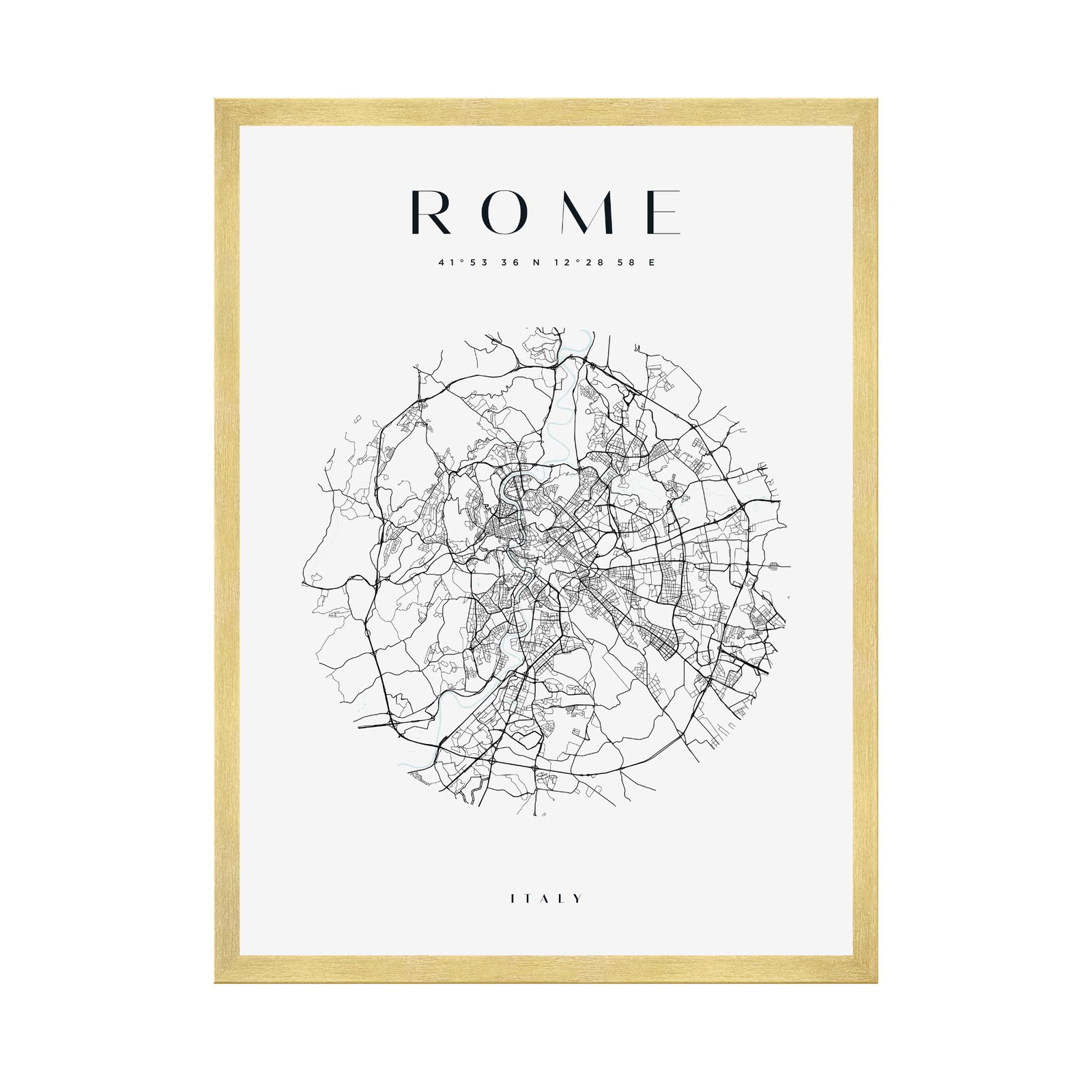 Poster Map of Mexico City circle 40X50 cm + gold frame