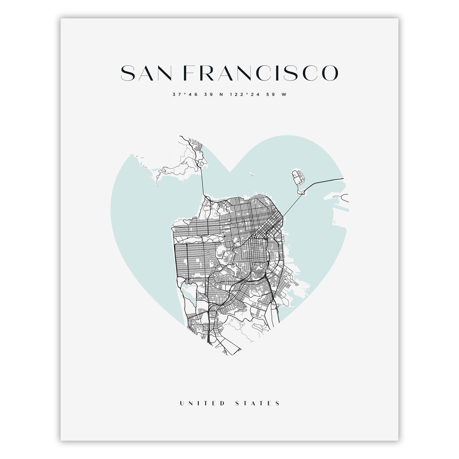 Poster San Francisco city map heart 40X50 cm + gold frame