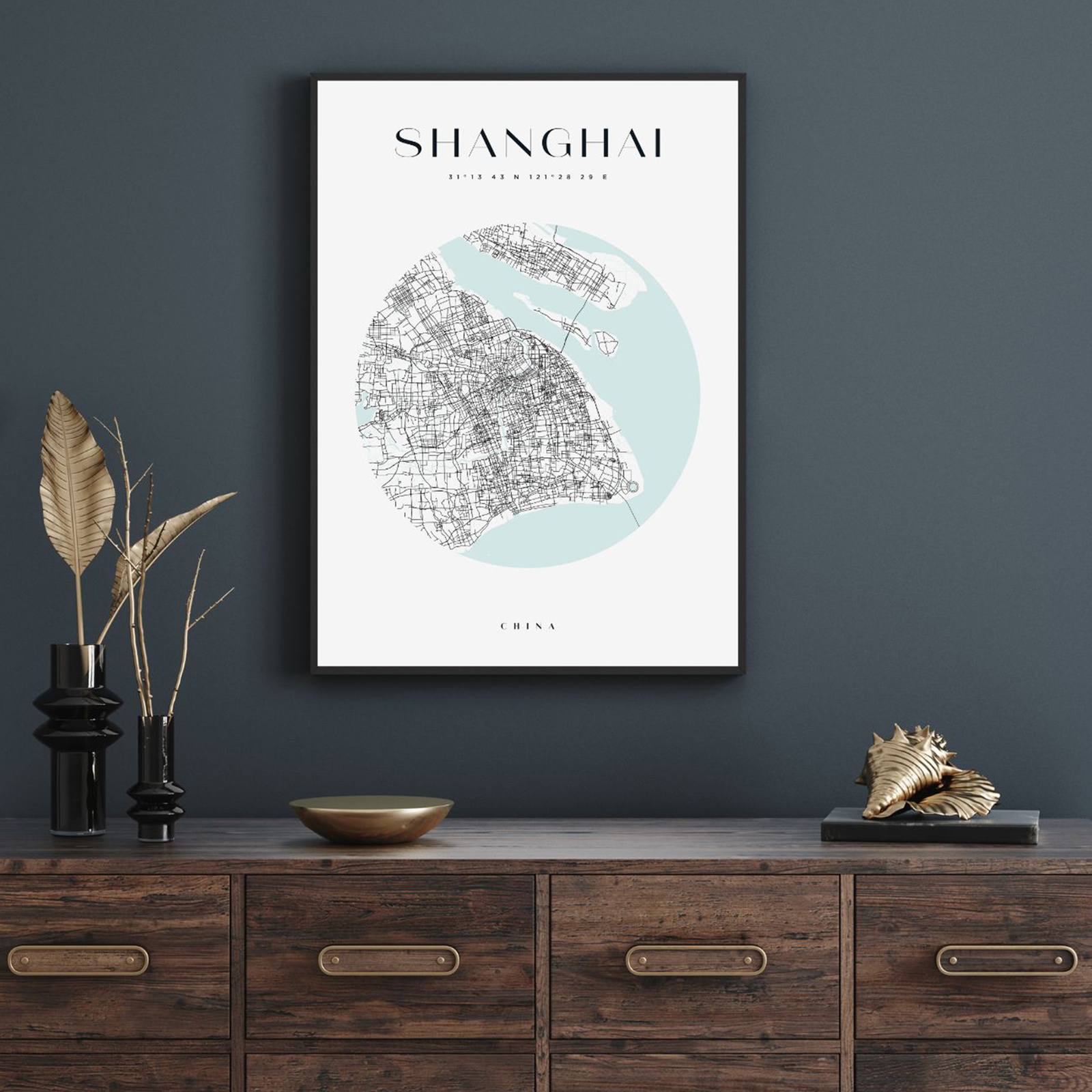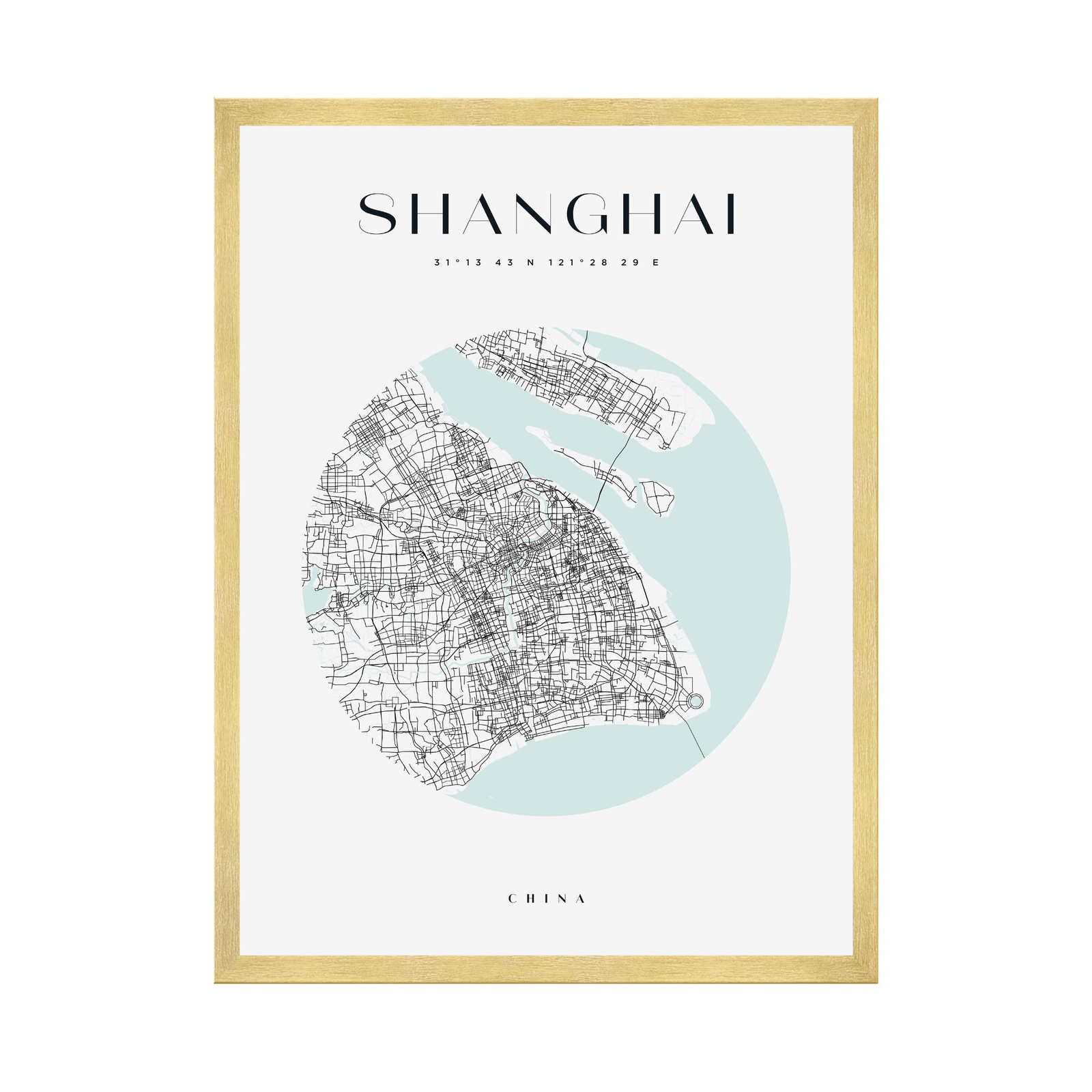 Poster Shanghai city map circle 40X50 cm + gold frame