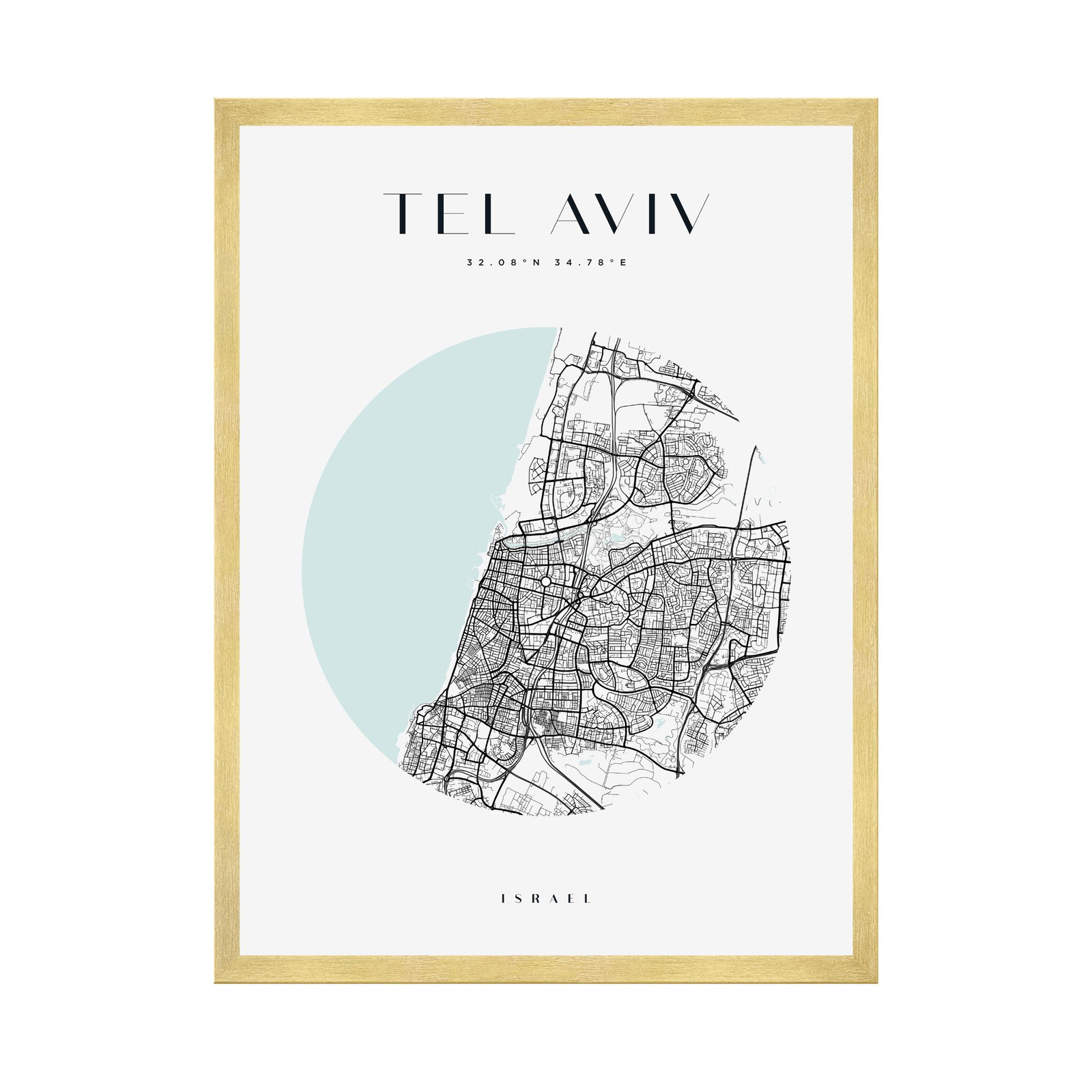 Poster Tel Aviv city map circle 40X50 cm + gold frame