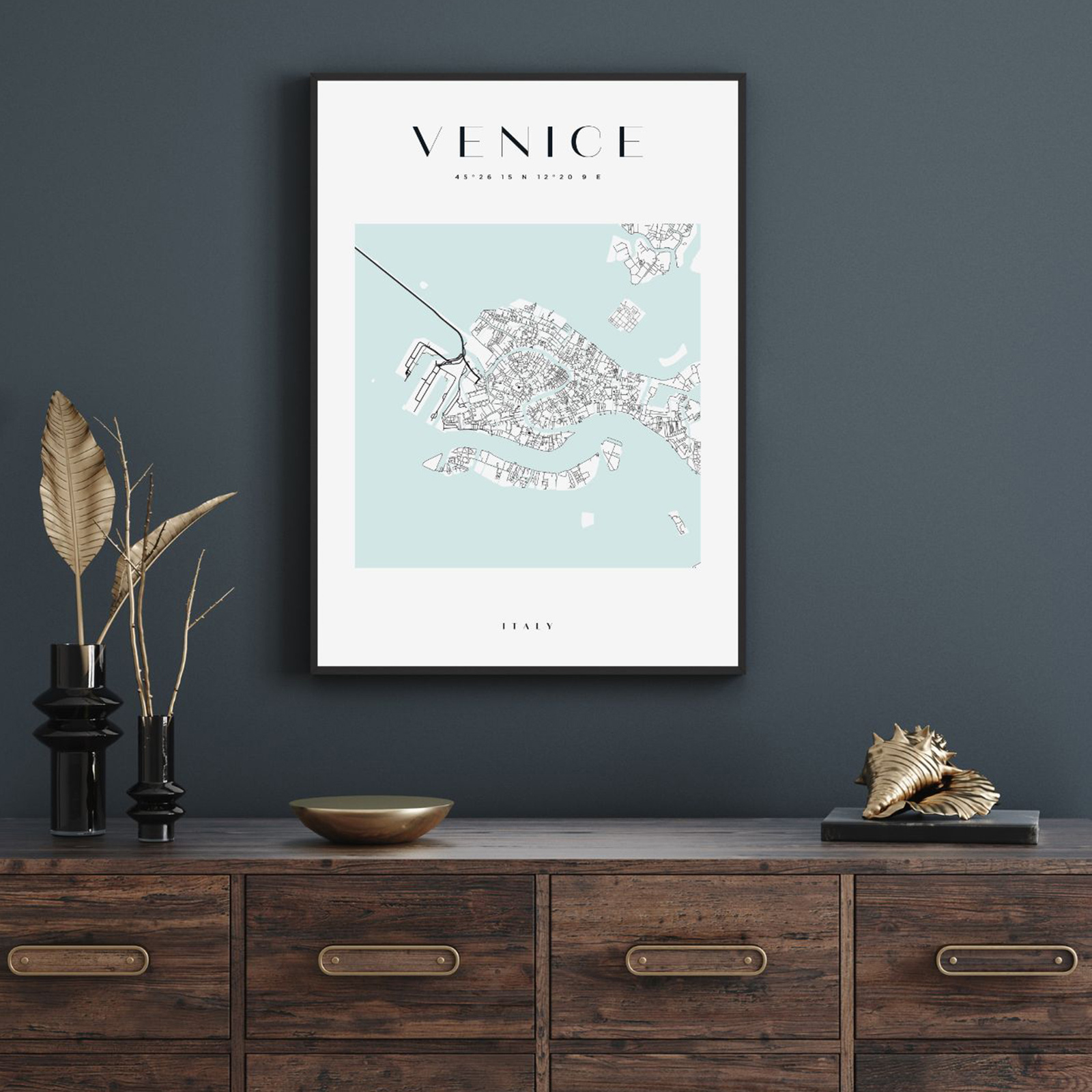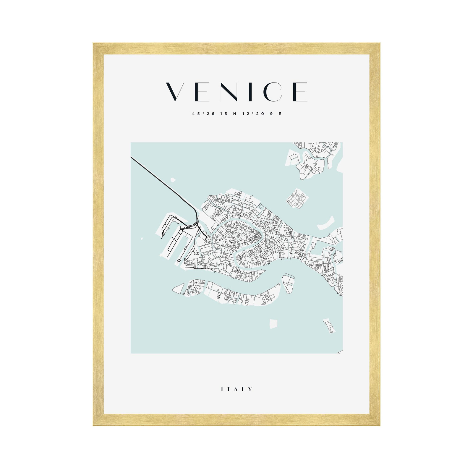 Poster Venice city map square 40X50 cm + gold frame